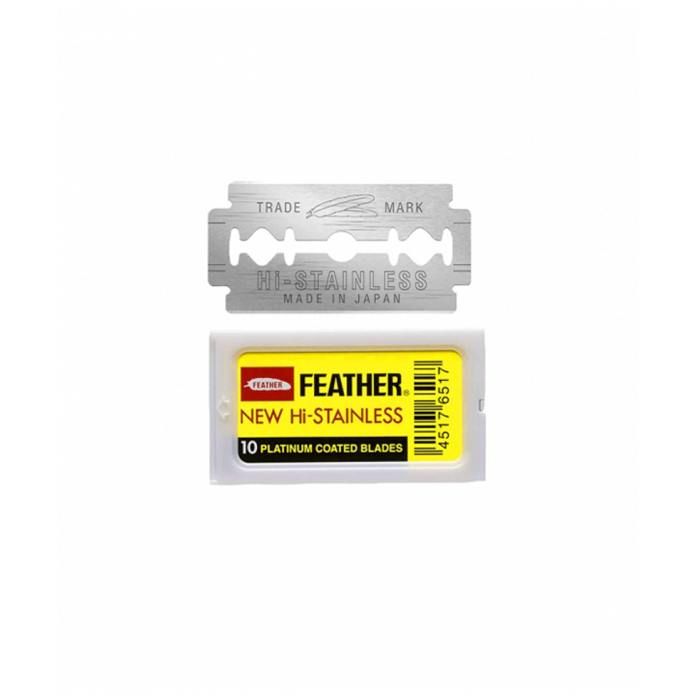 Подвійні леза Feather зроблені з першокласної нержавіючої сталі, на ріжучу кромку нанесено платинове покриття, що забезпечує хірургічну гостроту, а також довговічність лез та гарантує гладке та чисте гоління.