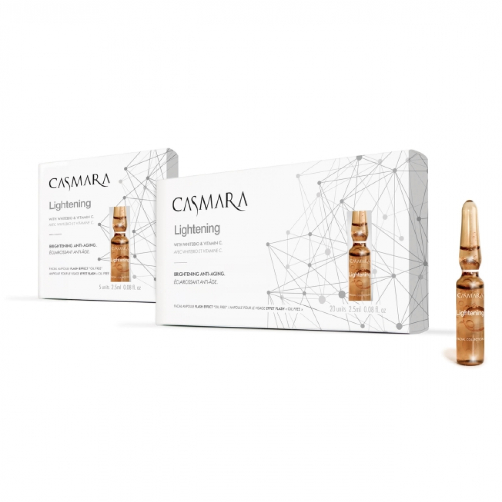 Ампули для домашнього догляду, які відбілюють, освітлюють, вирівнюють тон шкіри та попереджають появу пігментних плям. Мають зволожуючу та антивікову дію. Революційна формула, яка надає шкірі сяйва. Результат: зволожена, молода шкіра з рівним, сяючим тоном. Ампули не містять олій. Представлені у двох упаковках: блістер 5 ампул та блістер 20 ампул. Для будь-якого віку та типу шкіри. В тому числі для чутливої шкіри.
